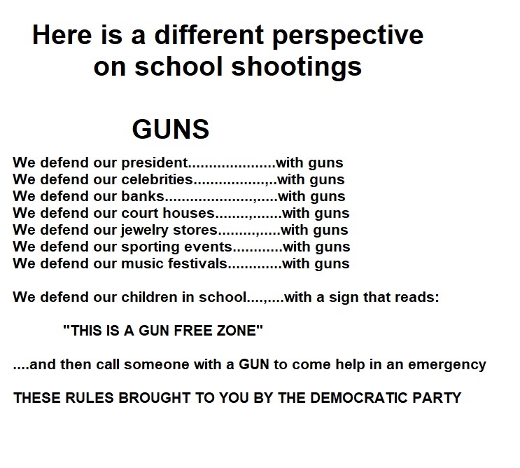 Democrats do not want guns in school so they can eventually get rid of the 2nd amendment and guns entirely because they want kids to keep being killed until they get rid of all guns and the 2nd amendment.