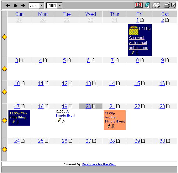 The Month Grid view displays a month's worth of events in a familiar wall calendar format.
